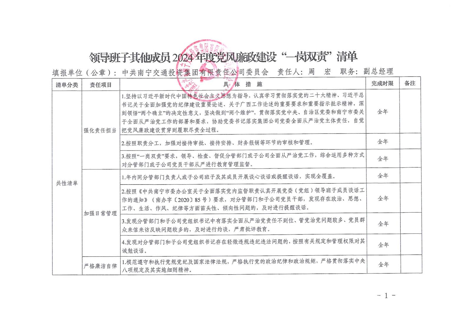 領(lǐng)導(dǎo)班子其他成員2024年度黨風(fēng)廉政建設(shè)“一崗雙責(zé)”清單(六)