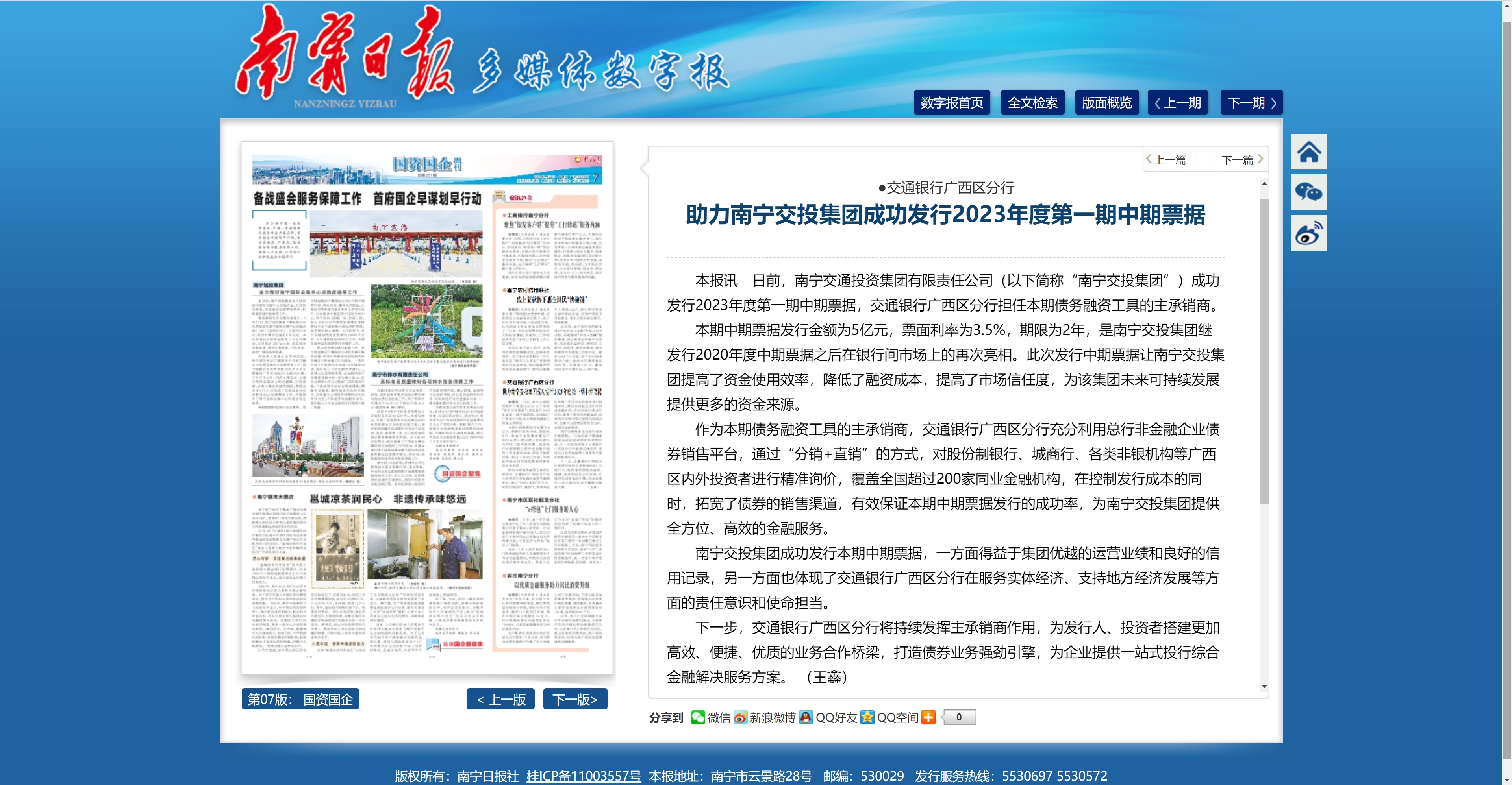 交通銀行廣西區(qū)分行助力南寧交投集團成功發(fā)行2023年度第一期中期票據
