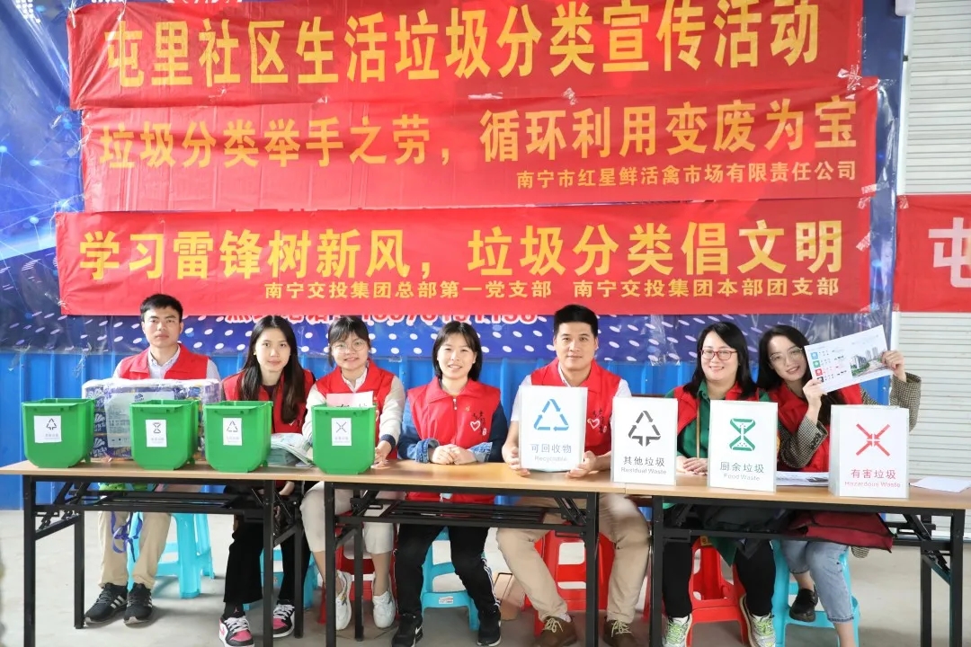 學(xué)習(xí)雷鋒精神 志愿服務(wù)滿綠城——南寧交投集團(tuán)本部黨員團(tuán)員到青秀區(qū)屯里社區(qū)開展垃圾分類宣傳活動(dòng)