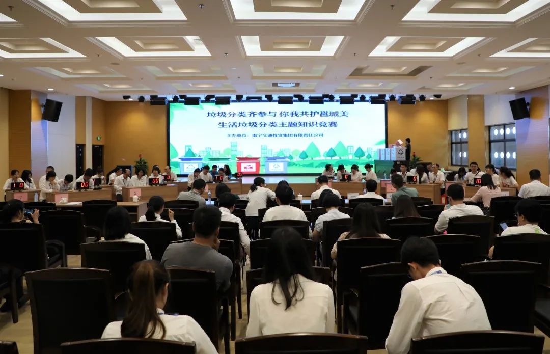 為深入貫徹習(xí)近平總書(shū)記關(guān)于生活垃圾分類(lèi)的系列重要指示批示精神,加快推進(jìn)集團(tuán)公司生活垃圾分類(lèi)工作,引導(dǎo)全體職工樹(shù)立環(huán)保意識(shí),5月8日,南寧交投集團(tuán)組織開(kāi)展“垃圾分類(lèi)齊參與,你我共護(hù)邕城美”趣味知識(shí)競(jìng)賽活動(dòng),市國(guó)資委黨建科科長(zhǎng)劉石清到現(xiàn)場(chǎng)指導(dǎo),集團(tuán)公司領(lǐng)導(dǎo)農(nóng)明姬、羅維松、黃海燕、秦勝友,集團(tuán)公司黨委委員吳江卡,以及各基層黨組織書(shū)記、黨員代表觀看了比賽。